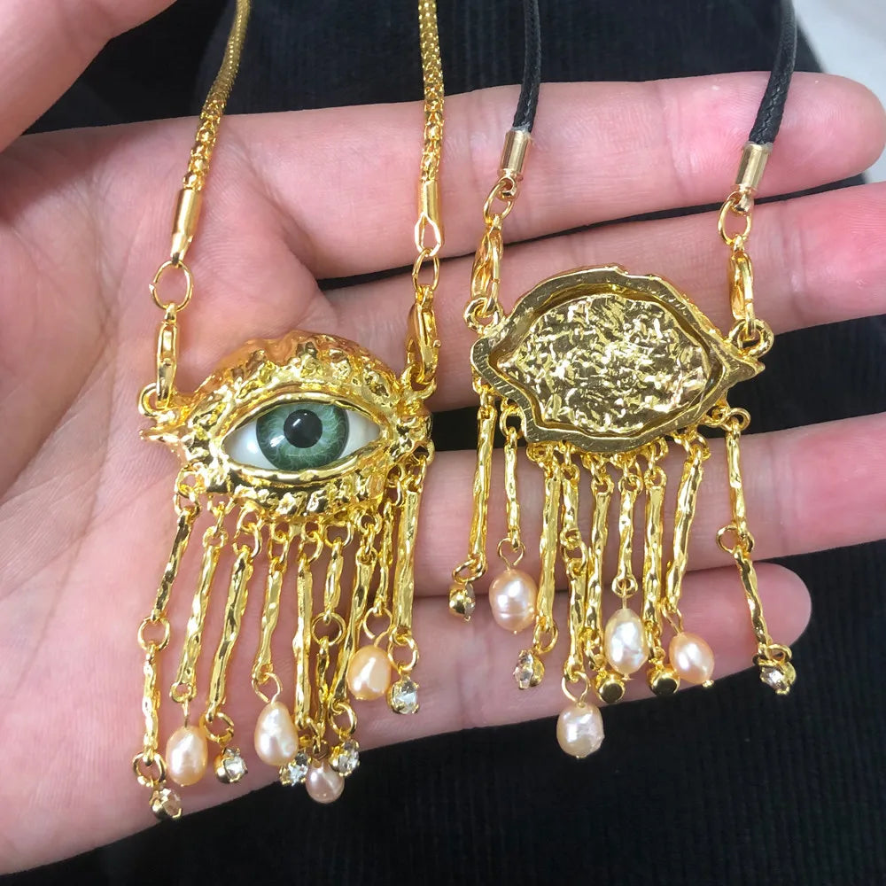 Statement Gold Eye Tassel Necklace