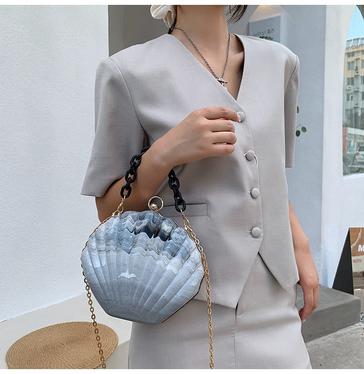 The world is your oyster! Reminiscent of beaches in tropical paradises but also extremely nostalgic, our solid shell clutch is a certain conversation starter, whatever the occasion. Available in six stunning marble effect designs.