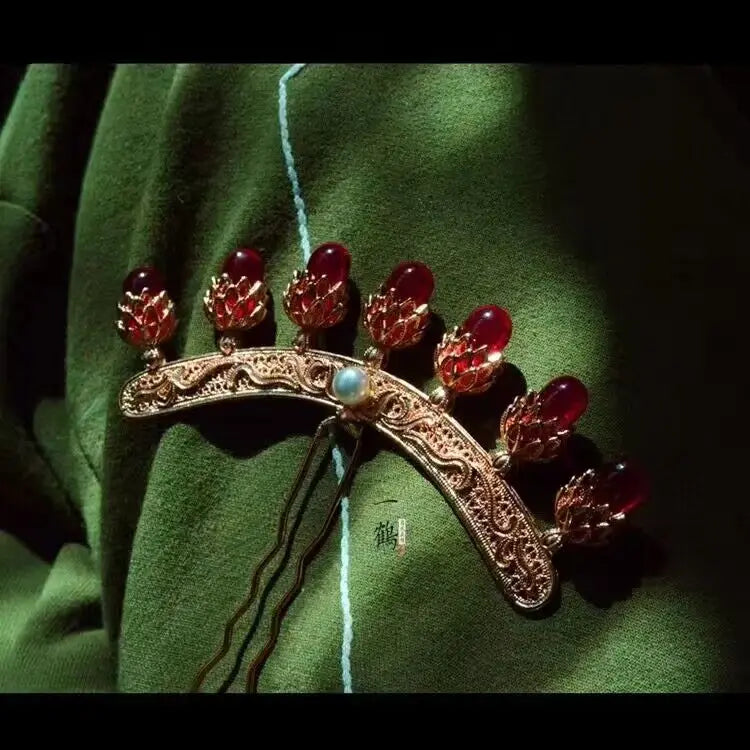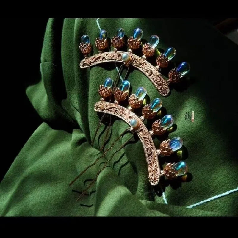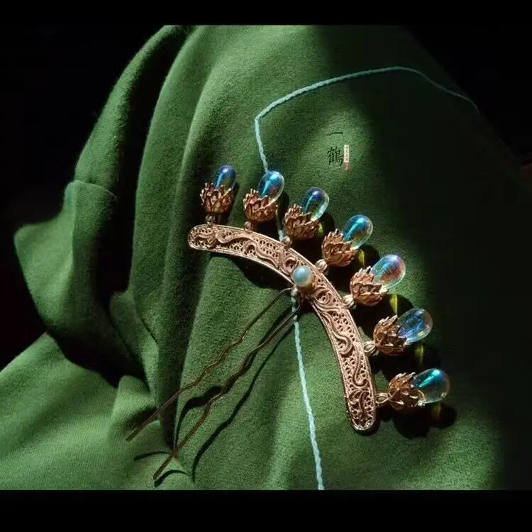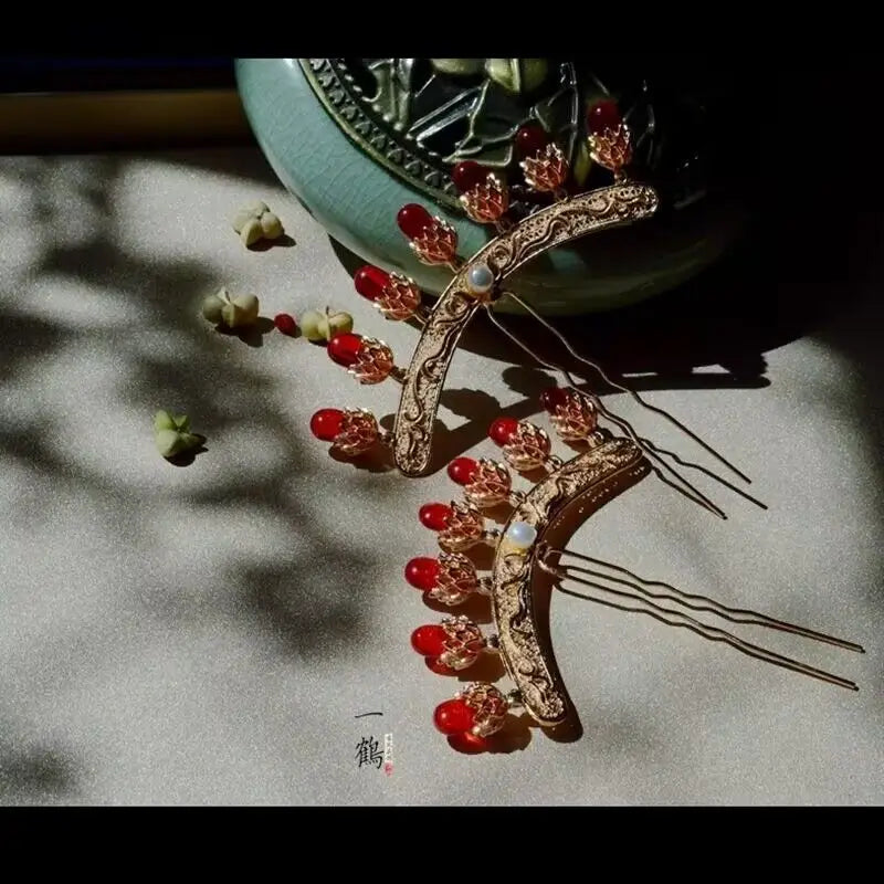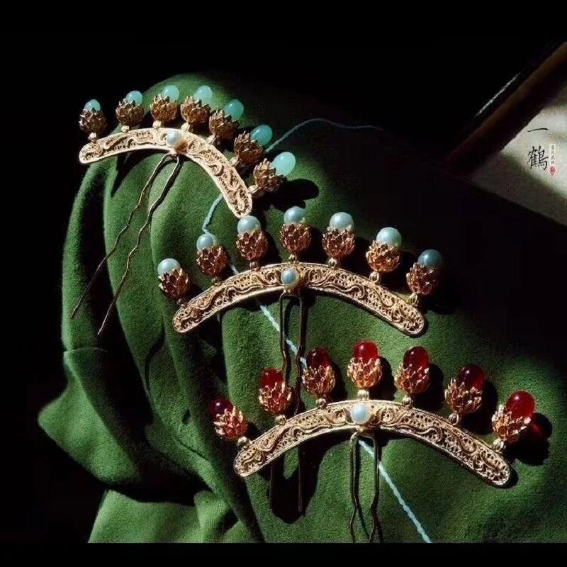 Introducing our Lotus Bead Hair Stick, a touch of elegance for your hair. Featuring a base with a bead in the centre and adorned with seven gold lotus flowers and coloured beads at the tip, it's available in white, red, multi-coloured, or green beads. Made from zinc alloy, it adds a hint of sophistication to any hairstyle.