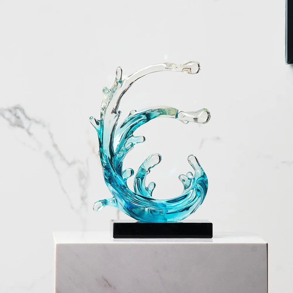 Each wave is securely placed on a solid resin block, ensuring stability and durability for years to come. Whether displayed as a standalone piece or as part of a larger collection, this sculpture is sure to become a focal point in any room, sparking conversations and inspiring admiration for its beauty and craftsmanship.