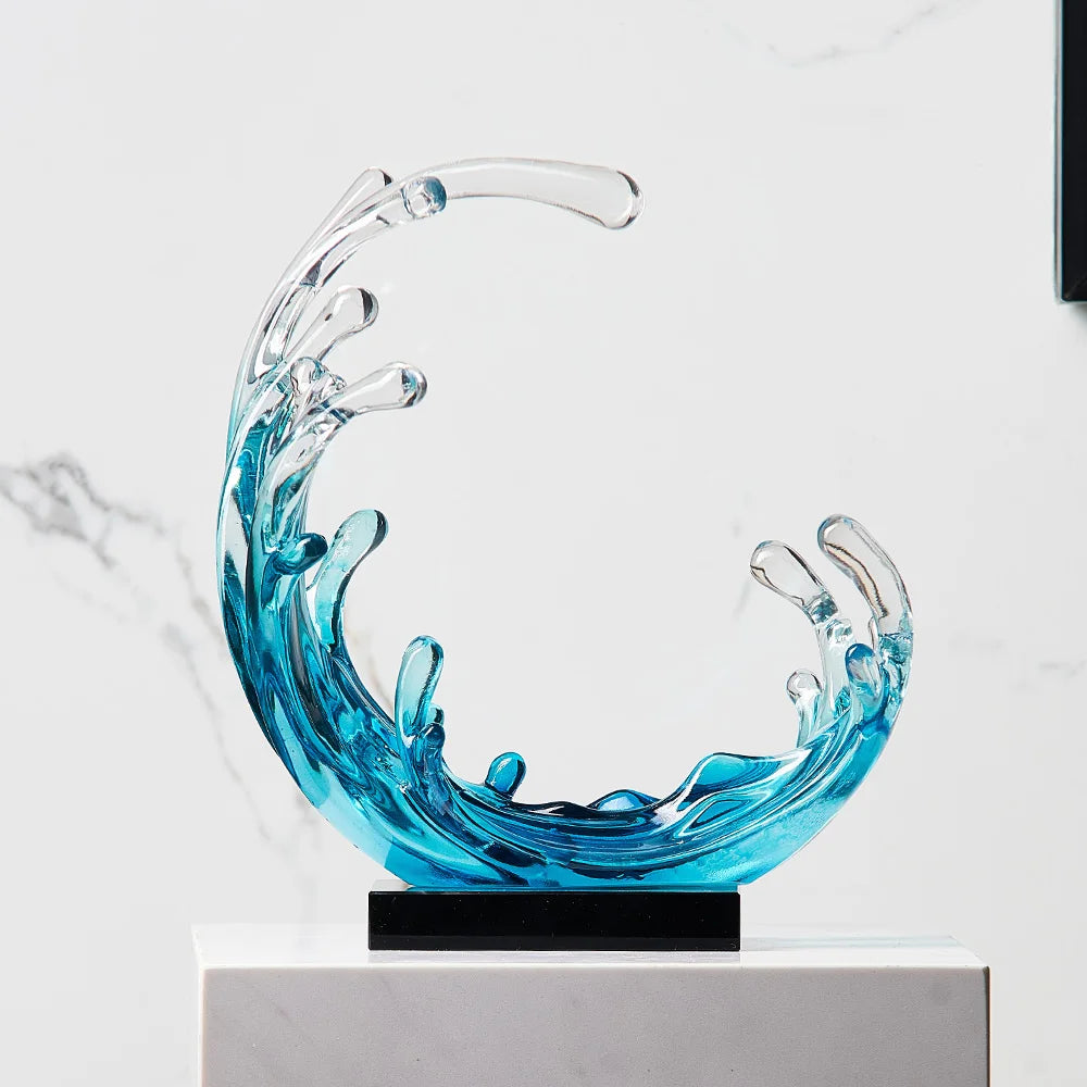 Available in both small and large sizes, our Ocean Wave Sculpture boasts a perfect balance of abstract artistry and realistic craftsmanship. The wave, crafted from a blend of blue and clear resin, appears as if it's about to crash, evoking a sense of motion and energy.