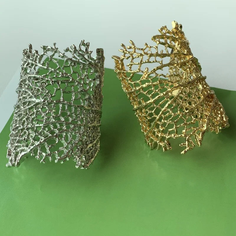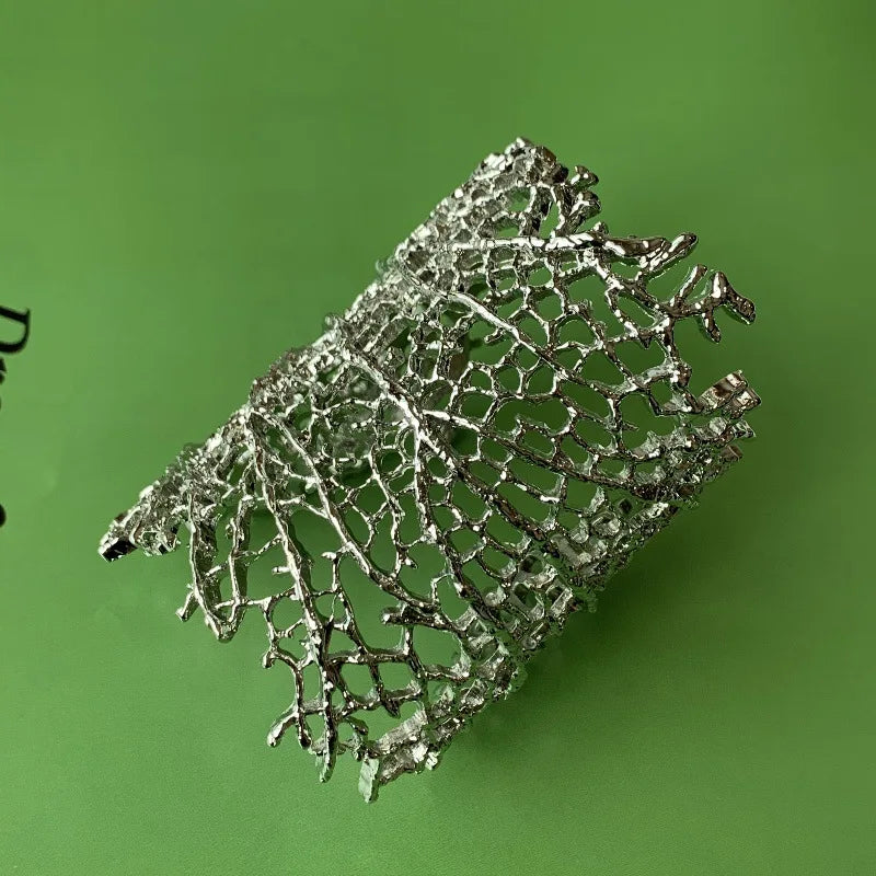The Coral Open Bracelet is a beautifully crafted cuff-style accessory made from premium zinc alloy, available in both silver and gold tones. Its design features intricate metalwork that elegantly captures the delicate patterns of coral, offering a unique blend of nature-inspired artistry and refined craftsmanship. The open-ended structure allows for easy adjustment, ensuring a comfortable and flattering fit on a wide range of wrist sizes. For the ultimate sea goddess look, add our Coral Choker necklace to the mix!