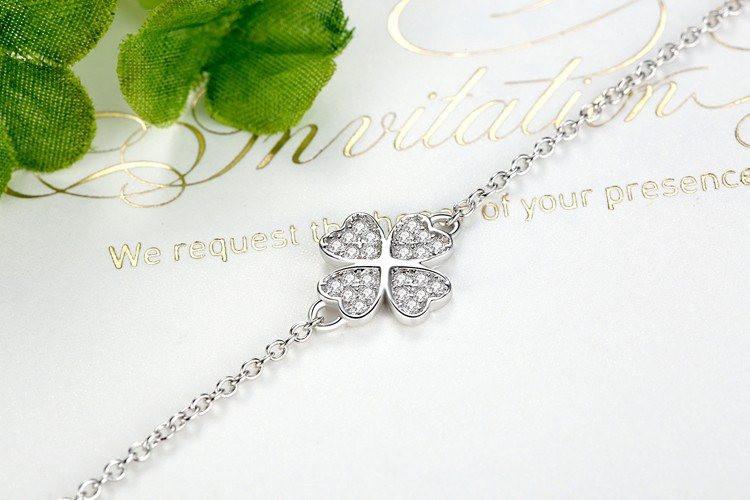 This unique and charming bracelet features a four leaf clover which is designed with lovely crystals.