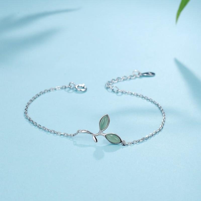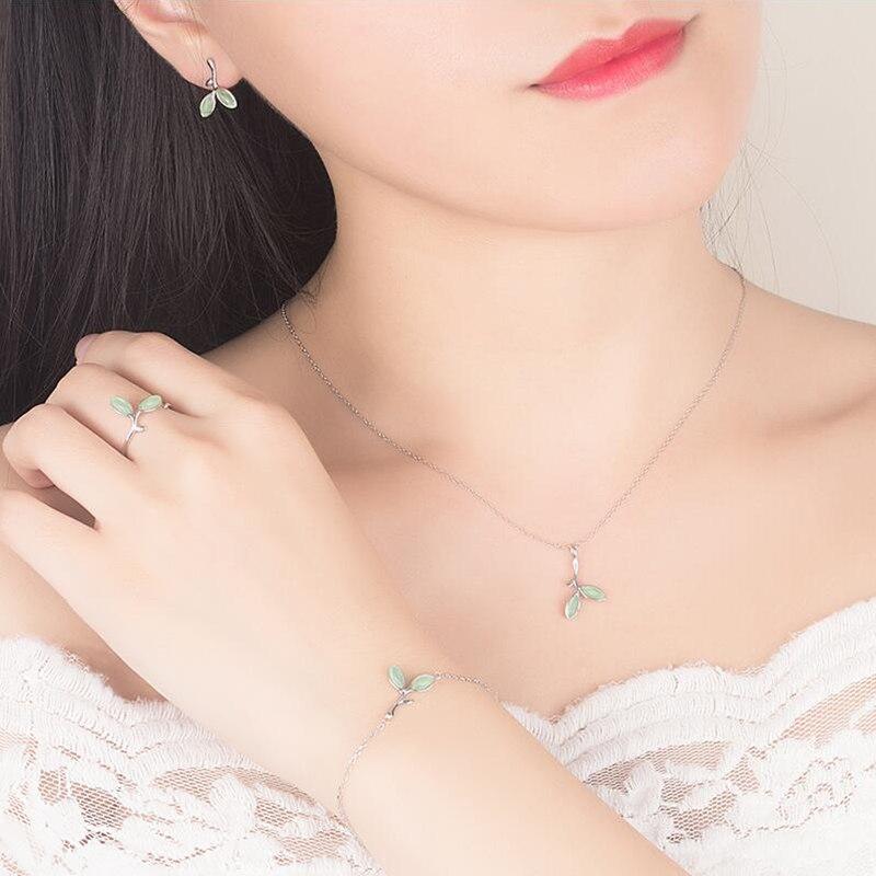 It is crafted from 925 Sterling Silver and set with green Opal stones.