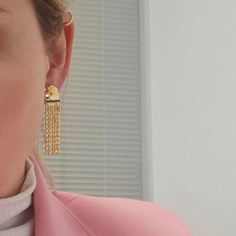 Introducing our 14K Gold Plated Eagle Tassel Earrings – a captivating blend of statement, luxury, and Egyptian-inspired style. These earrings feature a majestic eagle with dangling tassels below, all elegantly crafted in copper plated with 14K gold. The design is adorned with contrasting blue gems, adding a touch of sophistication to this exquisite piece. Elevate your look with these stunning earrings, where bold design meets timeless elegance.