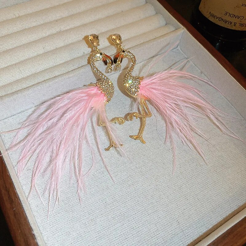 Statement Feather Flamingo Earrings