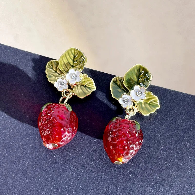 So, whether you're strolling through a sun-kissed farmers' market, sipping on a refreshing berry smoothie, or dancing under the stars at a summer soirée, let these Strawberry Plant Drop Earrings be your fruity fashion statement. Embrace the season in style and let the strawberry magic dangle from your ears! 🍓✨