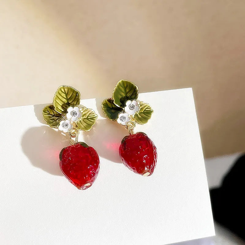 So, whether you're strolling through a sun-kissed farmers' market, sipping on a refreshing berry smoothie, or dancing under the stars at a summer soirée, let these Strawberry Plant Drop Earrings be your fruity fashion statement. Embrace the season in style and let the strawberry magic dangle from your ears! 🍓✨