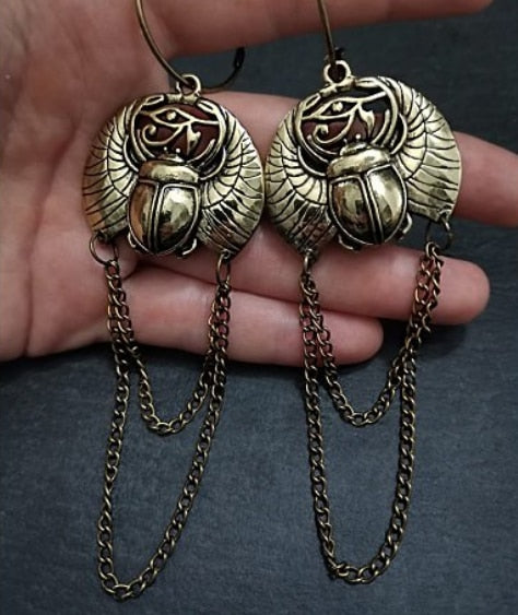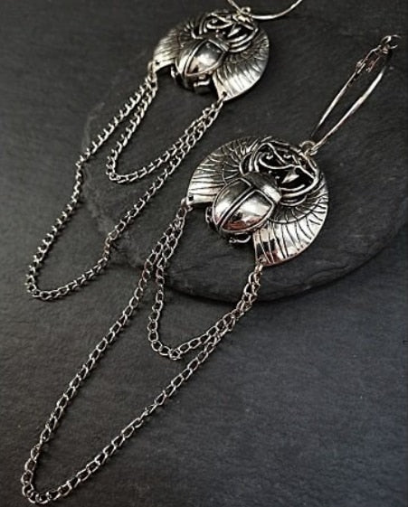 Feel like an Egyptian Goddess is these statement scarab beetle hoop earrings.