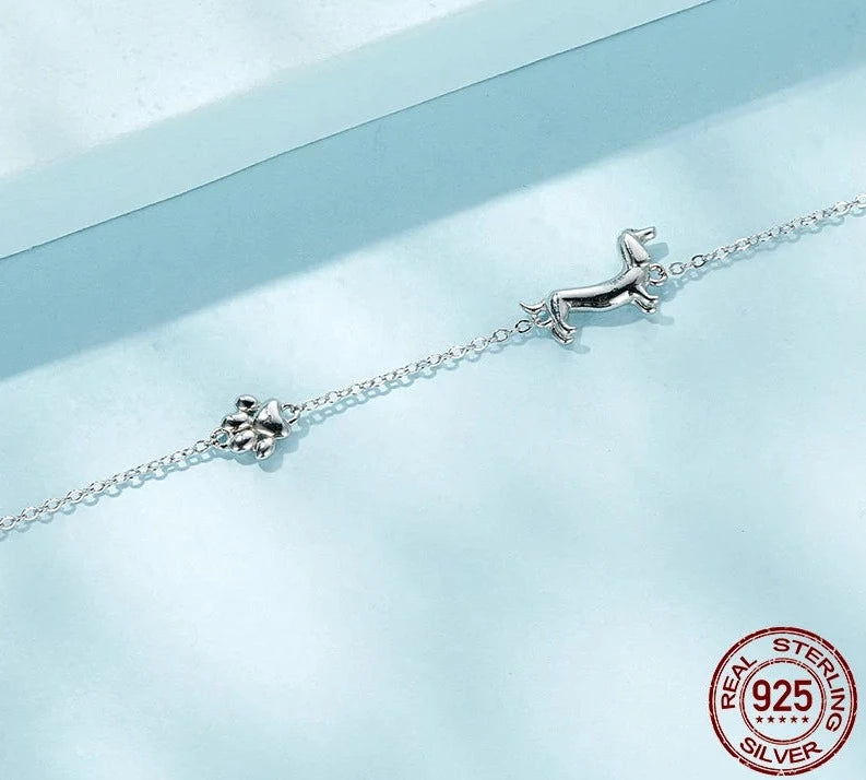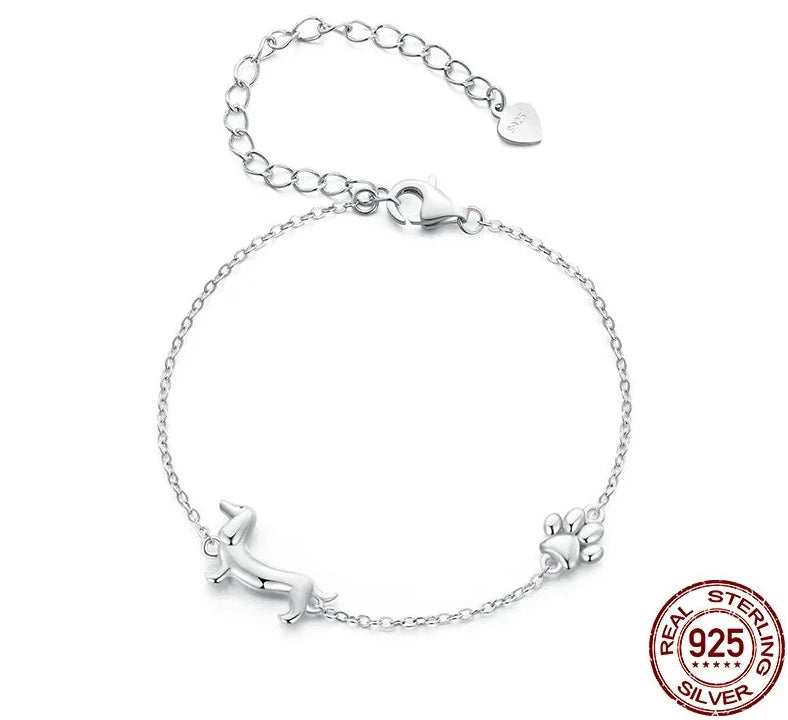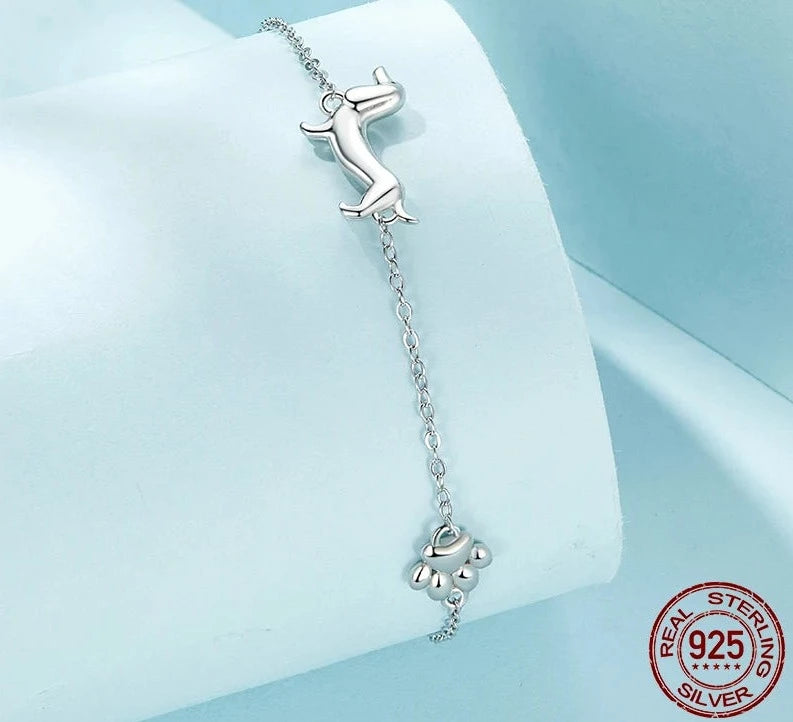 Introducing our exquisite Sterling Silver Dachshund Bracelet, a true masterpiece of craftsmanship. Made from high-quality 925 sterling silver, this bracelet captures the unique charm of the beloved dachshund breed with its intricate 3D design.