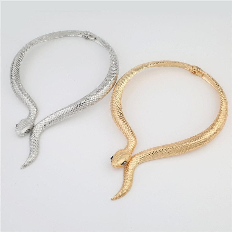 This exaggerated snake necklace is a perfect piece of jewellery to show off your love of reptiles. This statement necklace comes in silver and gold and wraps around the neck comfortably.