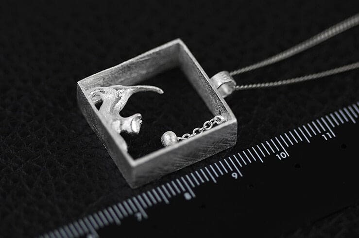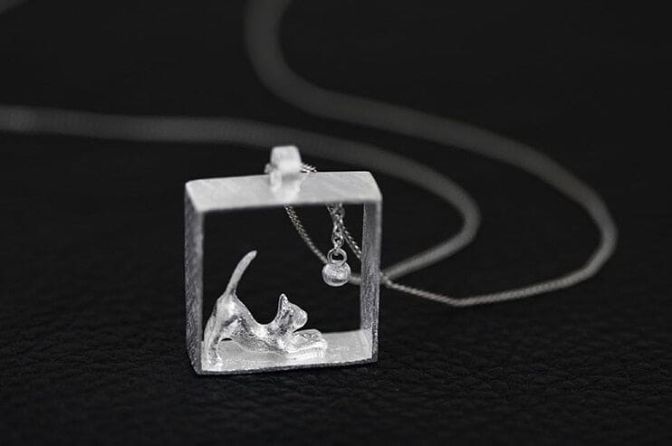 The Sterling Silver Square Cat Necklace is a unique and high-quality piece of jewellery that is perfect for cat lovers. Made from 925 sterling silver, this square-shaped necklace features a lively cat playing with a ball inside the pendant. You can choose between a gold or silver cat to suit your personal style.