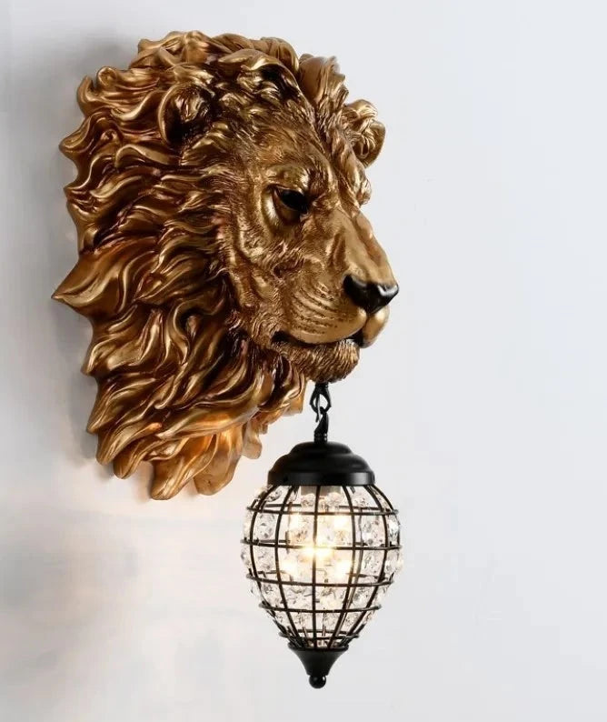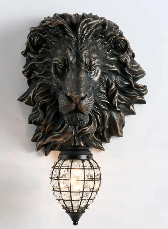 Illuminate your space with regal elegance using our Lion Crystal Wall Light. Crafted with exquisite attention to detail, this vintage-style fixture features a majestic lion made from resin, boasting realistic and intricate detailing. Choose between a small or large size and select either a black or gold lion to suit your décor preferences.