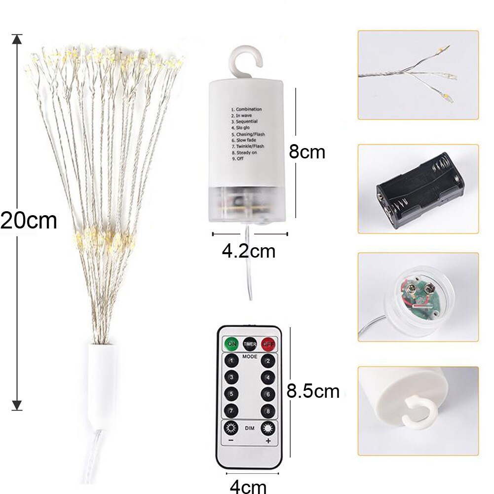 Each "starburst/dandelion head" light display has 198 LED lights simply operated by 4AA batteries controlled by a dimmable remote control.